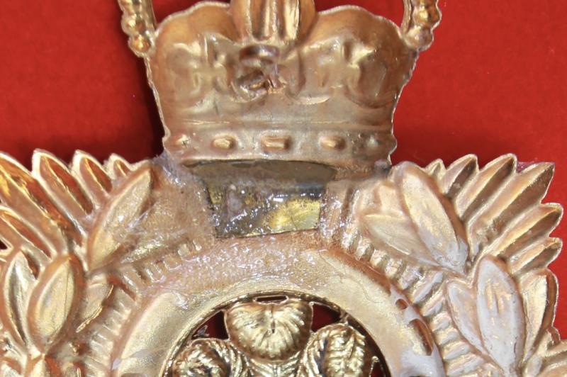 A bi-metal helmet plate for The Price of Wales's Division with three lug fastenings on the backplate (north, east and west) and two hexagonal lug fastenings on the centre (east and west). KK2739/2745.