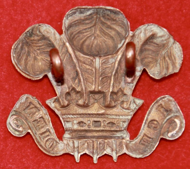 A brass cap badge for The Denbighshire Hussars with two lug fastenings (east and west). KK1433. Note: This pattern of badge was also worn by the 15th London (Civil Service Rifles) and other units.