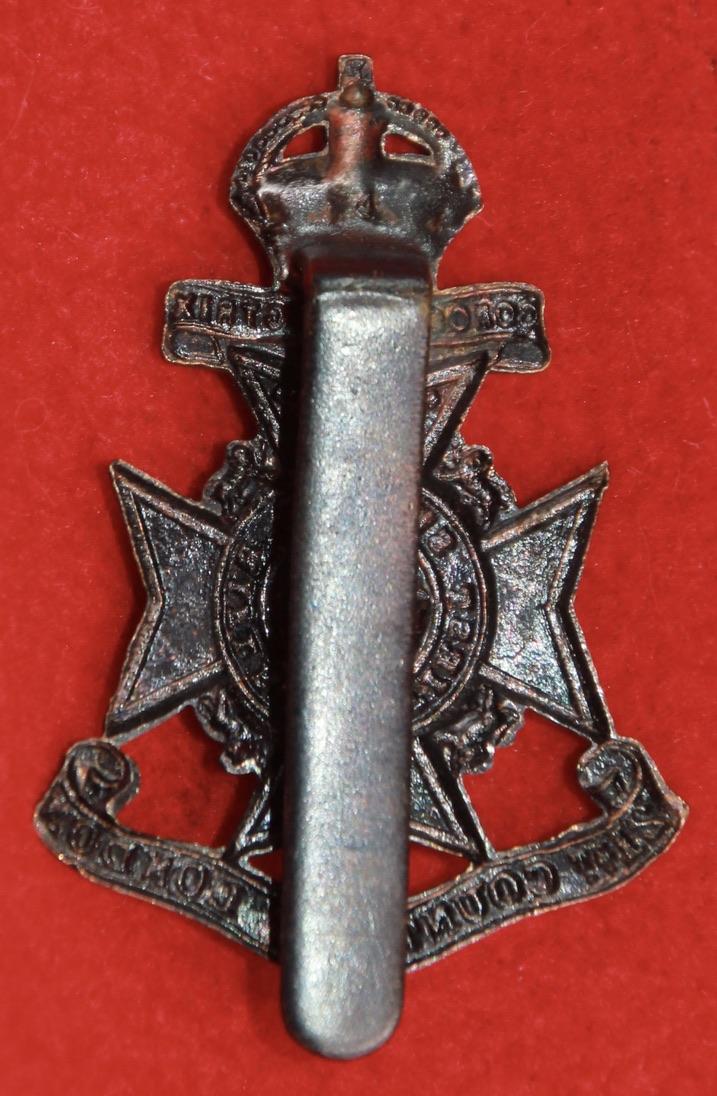 A blackened brass cap badge for the 21st (Finsbury Riflers) battalion of The London Regiment with a slider fastening. KK1853.