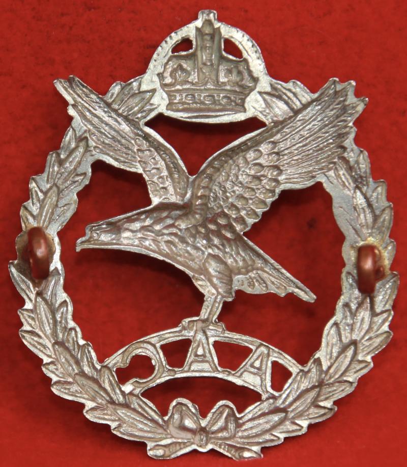 A white metal beret badge for The Army Air Corps with two lug fastenings (east and west). KK2054.