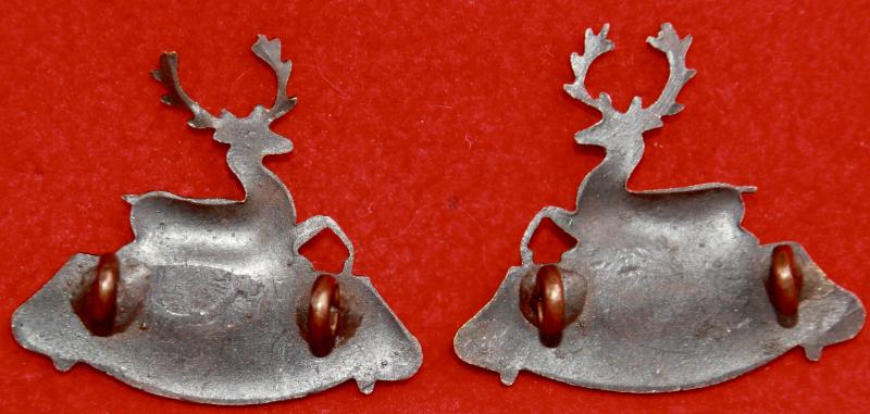 A pair of officer's service dress, bronzed, collar badges for The Hertfordshire Regiment, each with two lug fastenings (east and west). Churchill 2006.