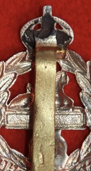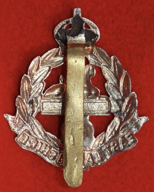 A scarce, bi-metal, cap badge for the 4th and 5th (territorial) battalions of The East Lancashire Regiment with a repaired/replacement slider. KK1722.