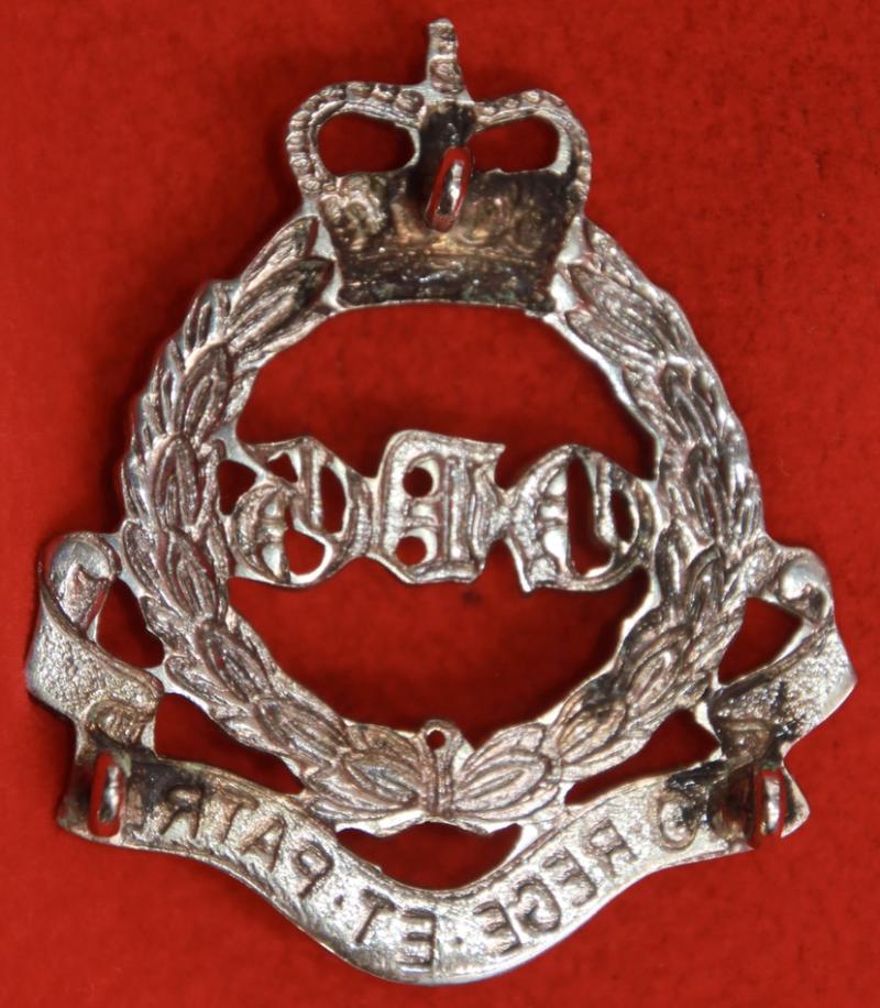 A silver-plated arm badge for a non-commissioned officer of The Queen's Dragoon Guards with three lug fastenings (north, east and west). Linaker & Dine 7.1C.