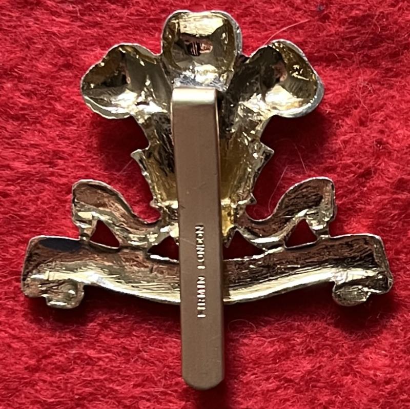 An anodised aluminium cap badge for The 10th Royal Hussars with a slider fastening (marked Firmin London). KK765.
