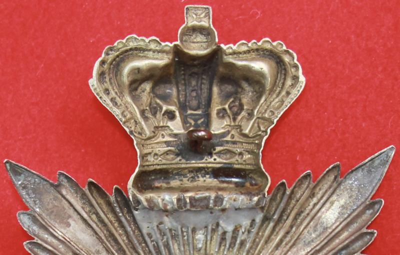 A rare, silvered, helmet plate for an officer of The Hertfordshire Rifle Volunteers with three lug fastenings (north, east and west). KK1799. Note: The crown appears to have had some repair/support work done to it.