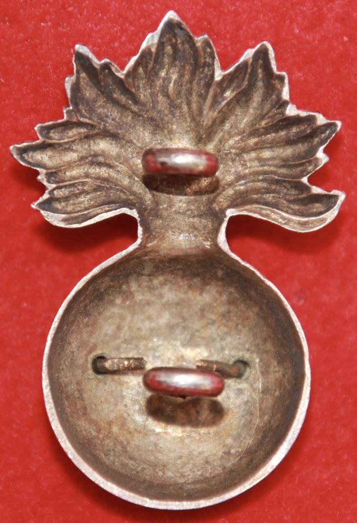 A two-piece, silvered, glengarry/collar badge for a volunteer battalion of The Royal Scots Fusiliers with two lug fastenings (north and south). Bloomer book 2, reference 65, or Churchill 610.