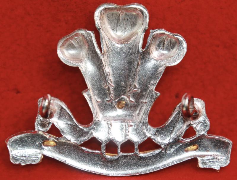 A pristine, silver-plated and gilt, cap badge for an officer of The Cheshire Yeomanry with two lug fastenings (east and west). KK2301.