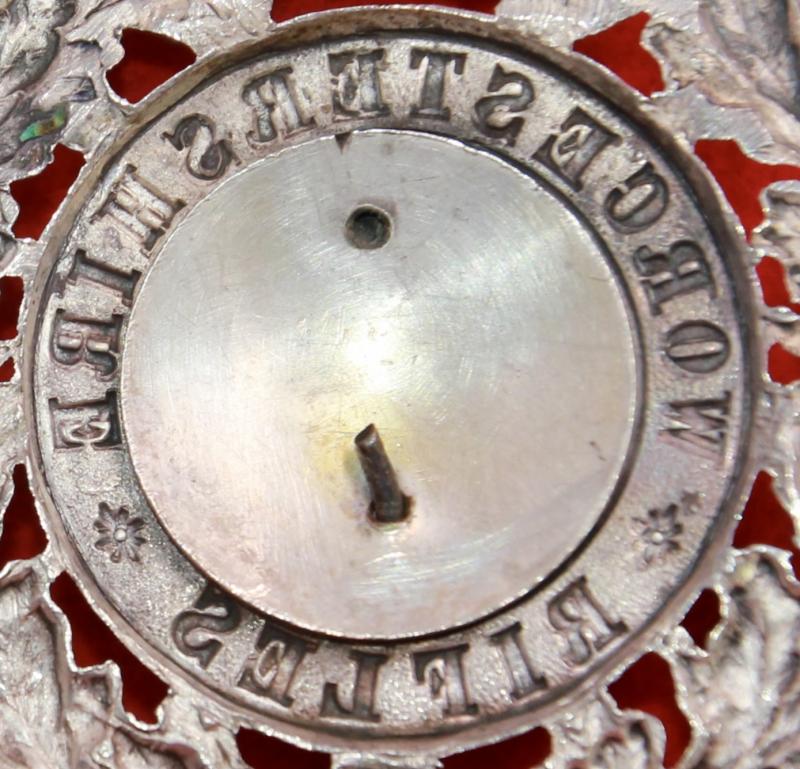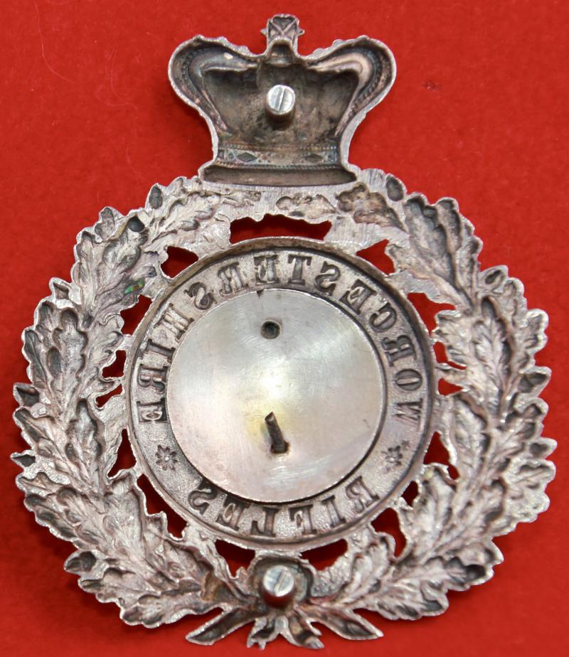 A rare, silvered, pouch-belt plate for an officer of The Worcestershire Rifle Volunteers with two screw fastenings (north and south). Worn circa 1859-1885. Bennett 902.