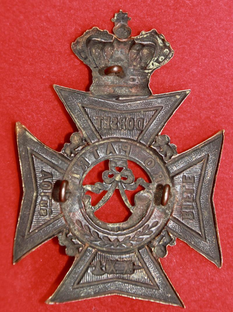 A scarce, blackened brass, helmet plate for The Dorset Rifle Volunteers with three lug fastenings (north, east and west).