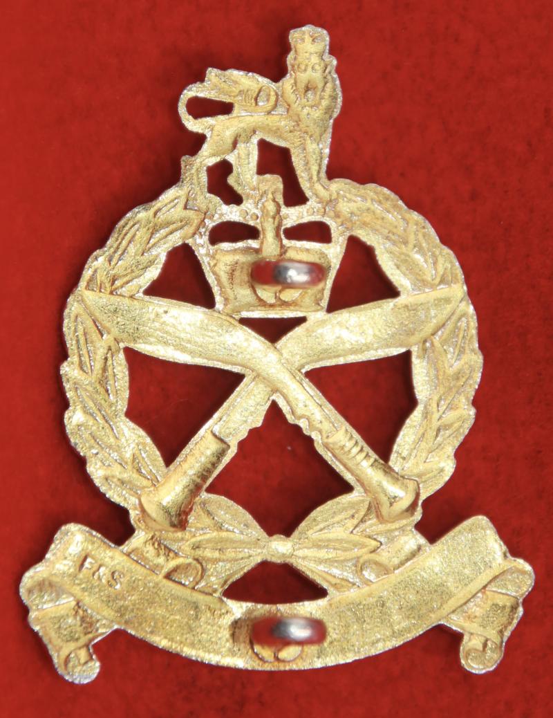 A silver-plated and gilt cap badge for an officer of The Gurkha Adjutant General's Corps with two lug fastenings (north and south). The reverse is marked F&S for manufacturer Firmin & Sons.