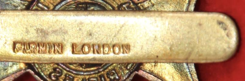 A blackened brass beret badge for the 1st cadet battalion of The King's Royal Rifle Corps with a slider fastening (marked Firmin London) and a red felt backing. As Cox 1578.