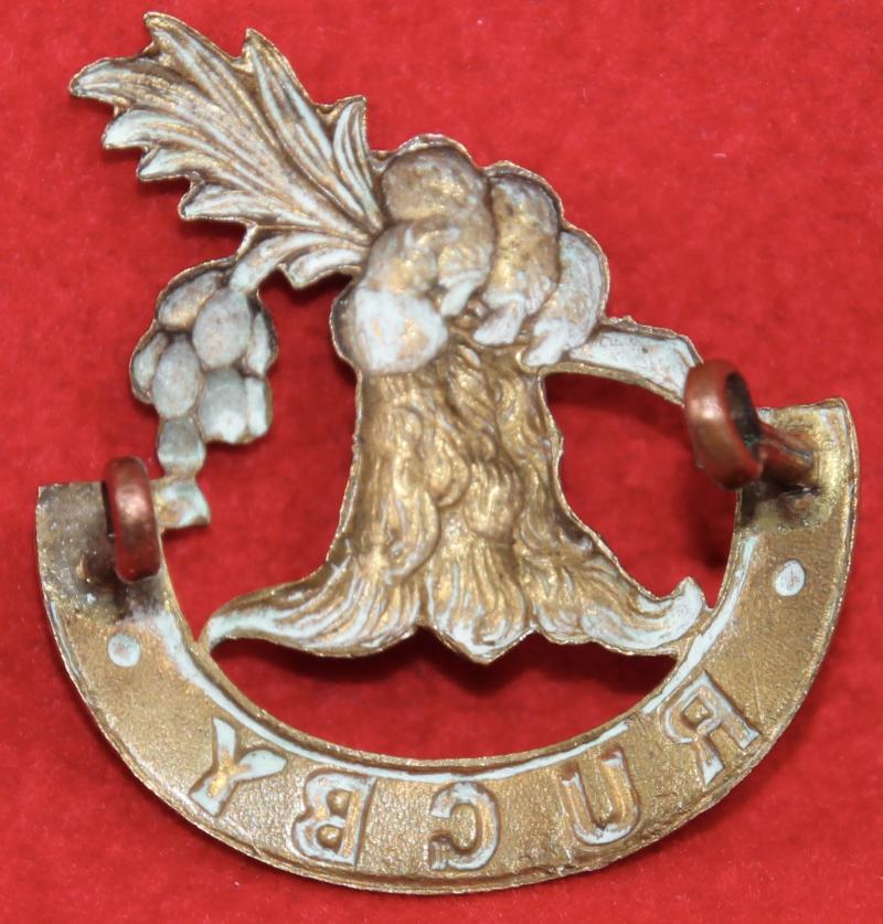 A brass cap badge for The Rugby School (Warwickshire) Officer Training Corps with two lug fastenings (east and west). KK2662.
