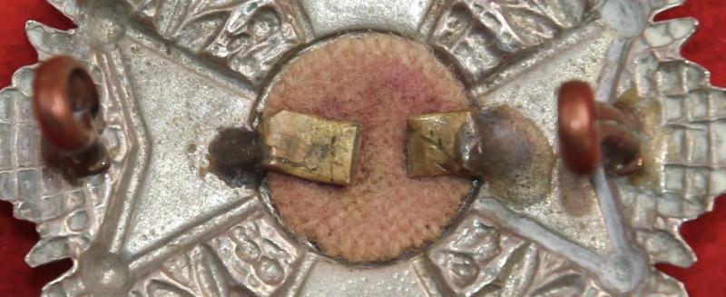 A scarce, white metal, cap badge for the 3rd (militia) battalion of The Border Regiment with two lug fastenings (east and west) and the usual two 'blade' fastenings holding a red felt centre in place. KK1221.
