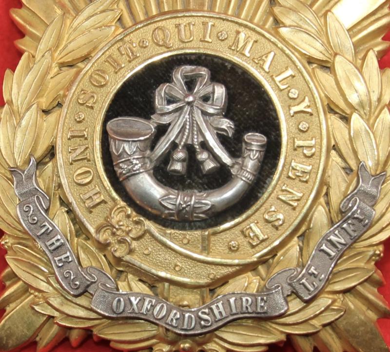 A rare and attractive, silver and gilt, helmet plate for an officer of The Oxfordshire Light Infantry with three lug fastenings (north, east and west). As KK257.
