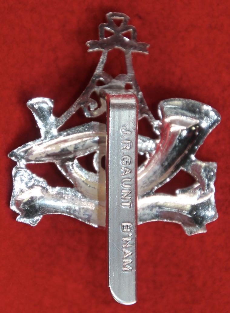 An anodised aluminium cap badge for The 10th Gurkha Rifles with a slider fastening (marked J.R. Gaunt B'ham). KK2086.