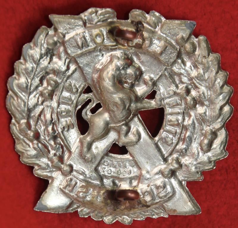 A white metal glengarry (perhaps sporran?) badge for the 14th battalion of The London Regiment (London Scottish) with two lug fastenings (north and south). KK1840.