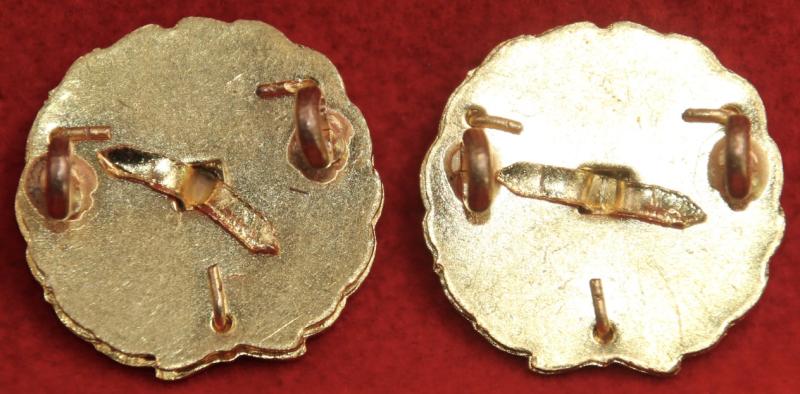 A nice pair of gilt and enamel collar badges for an officer of The Royal Hampshire Regiment, each with two lug fastenings (east and west). Churchill 1007/1008 or Woods 1.107.