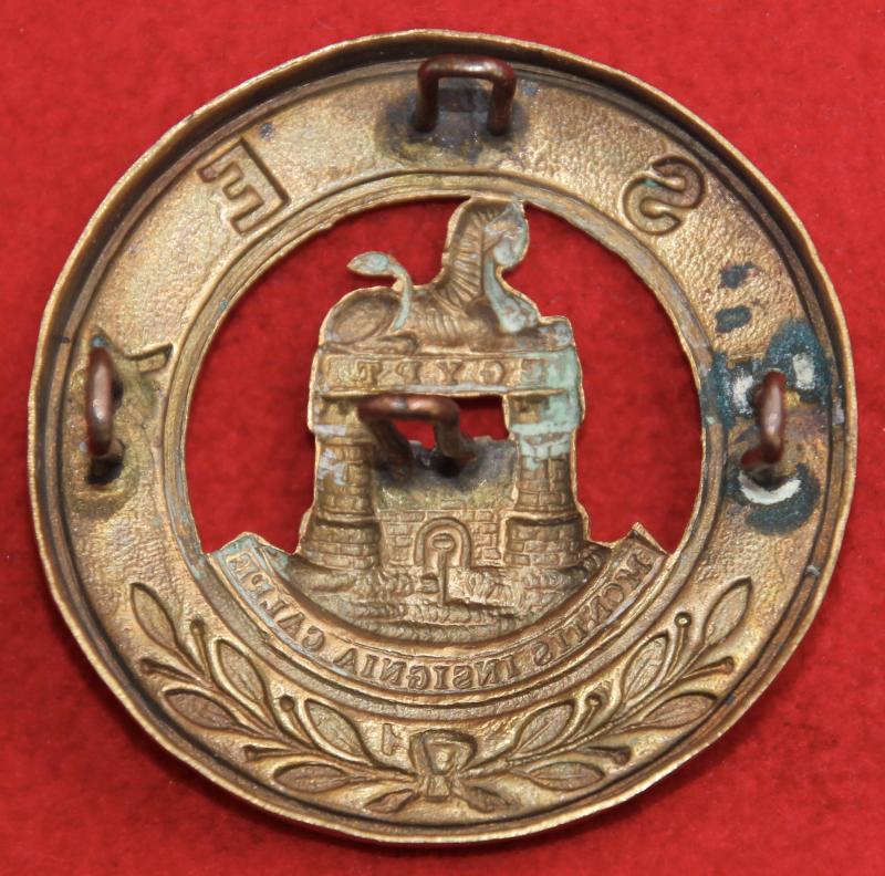A 'two tower', brass, helmet plate centre for The Essex Regiment with all four of its staple-style loop fastenings. KK334.