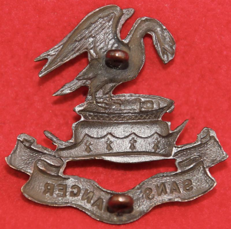 A scarce, die-stamped, bronzed cap badge for the 17th-20th (1st-4th City) battalions of The King's Regiment (Liverpool) with two lug fastenings (north and south). KK1146.