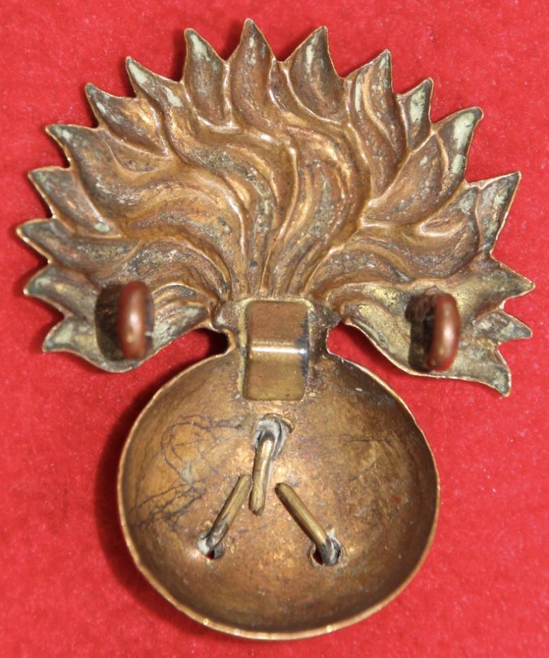 A scarce, George 6th pattern, bi-metal cap badge for a warrant officer of The Grenadier Guards with two lug fastenings (east and west). KK1950. Note: There is a strengthener behind the neck of the grenade.