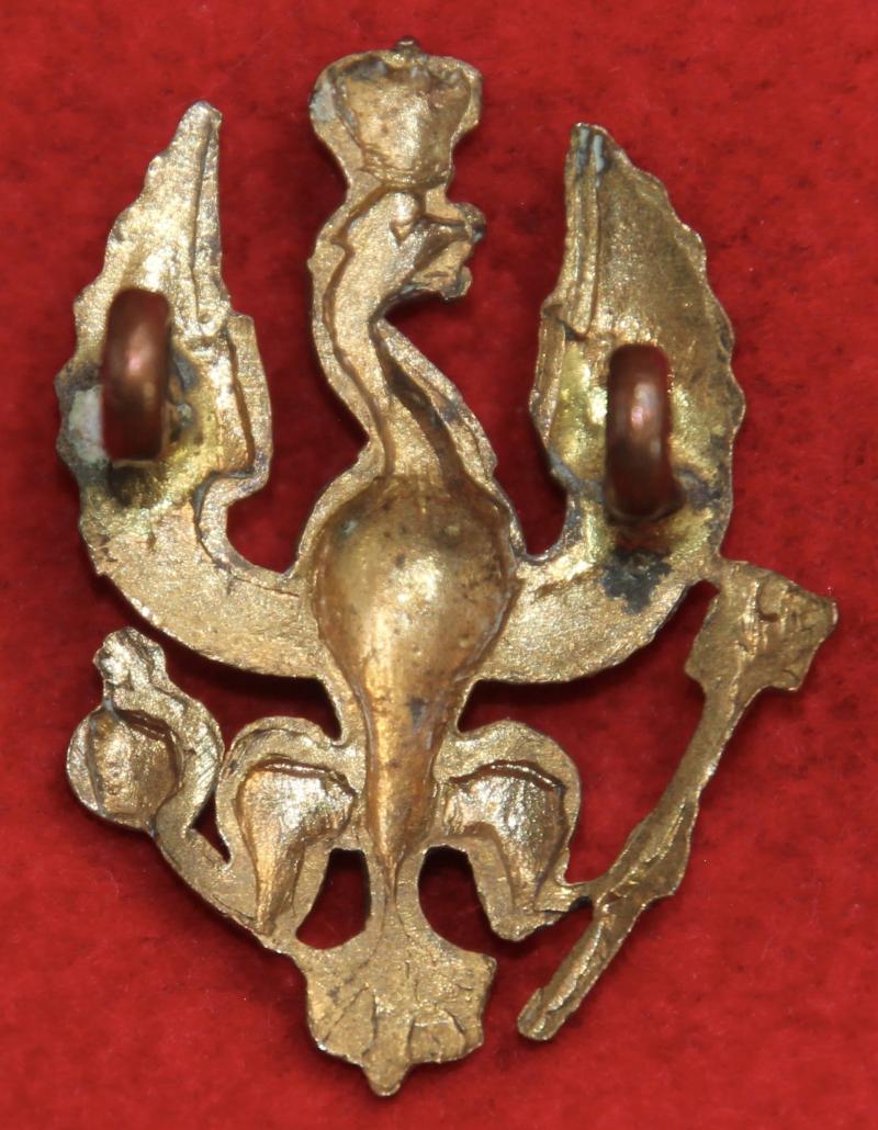 A scarce, brass, collar badge for The 14th/20th Hussars with two lug fastenings (east and west). As Churchill & Westlake 27. Note: This is the rare pattern with FR on the eagle's chest.