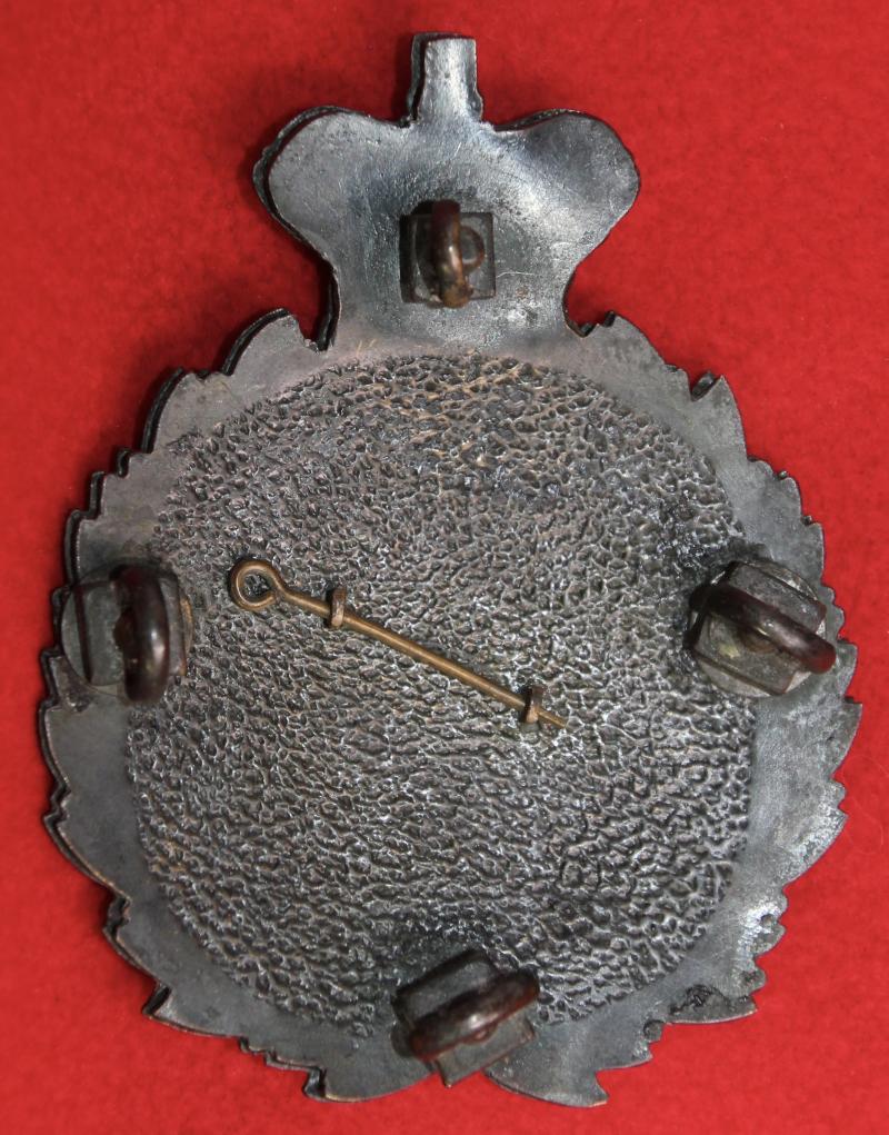 A nice, blackened/white metal, pouch-belt plate as used by assorted rifle volunteer units with its backplate, four screw fastenings and nuts intact. Possibly a non-commissioned officer's item.