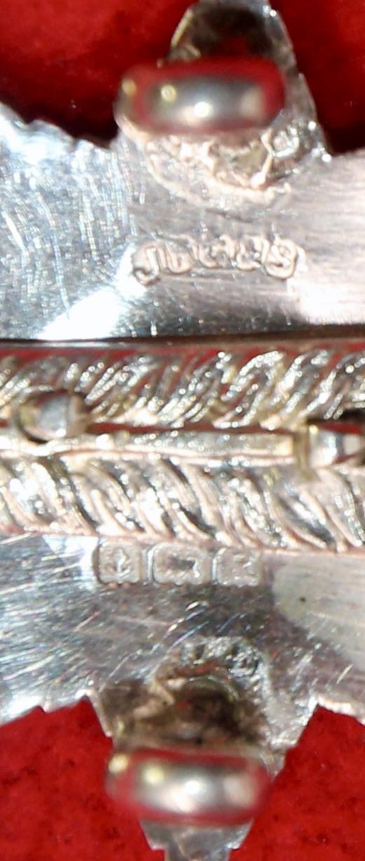 The reverse is marked JRG&S for manufacturer J.R. Gaunt & Son, Birmingham, sterling and the year 1941?
