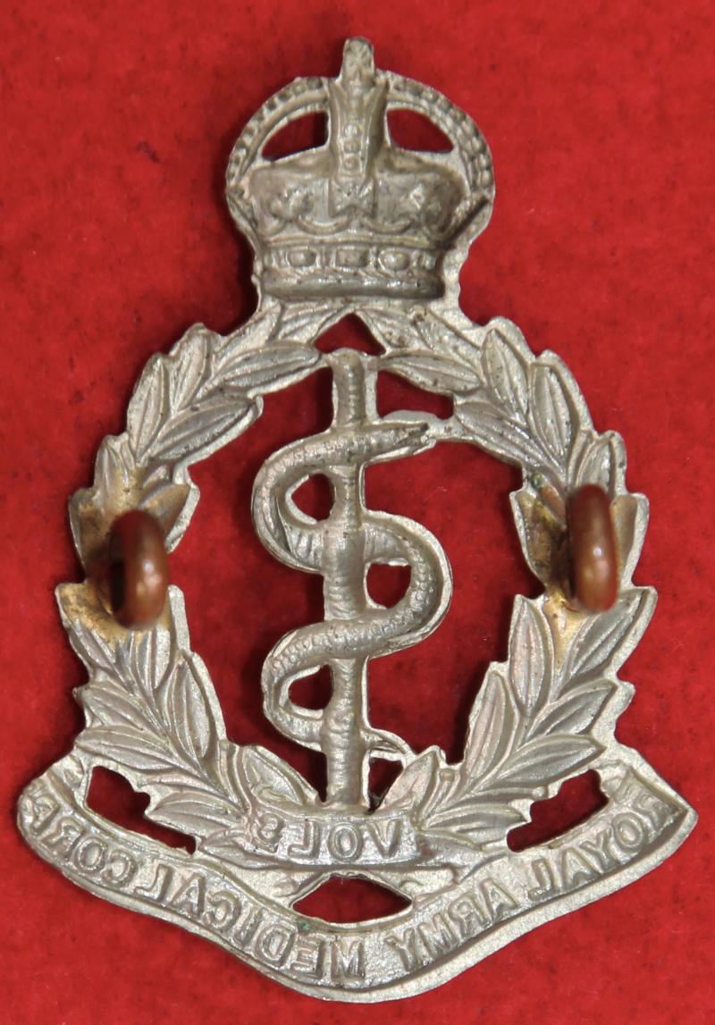 A scarce, white metal, cap badge for The Royal Army Medical Corps (Volunteers) with two lug fastenings (east and west). As KK1015.