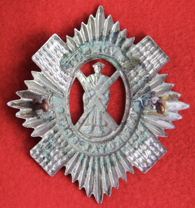 A scarce, white metal, glengarry badge for the 8th volunteer battalion of The Royal Scots (The Lothian Regiment) with two lug fastenings (east and west). Headquarters at Linlithgow. Bloomer book 2, 48.