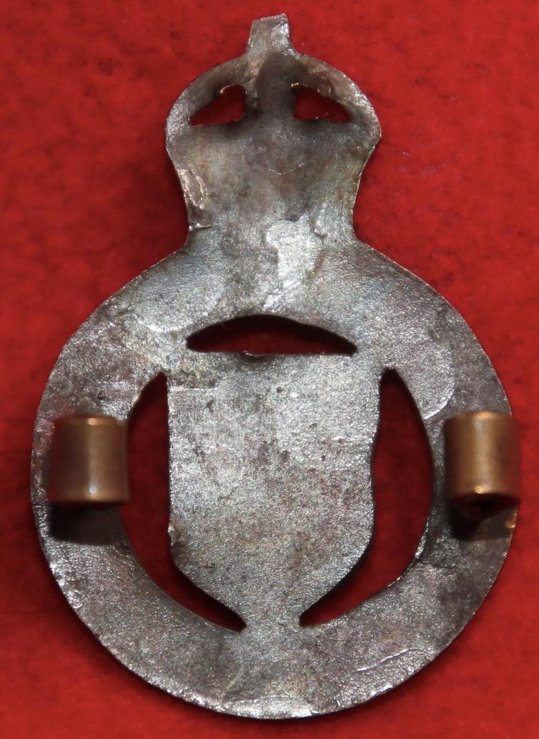A scarce, officer's service dress, bronzed cap badge for The Essex Imperial Yeomanry/Essex Yeomanry with two blade fastenings (east and west - bent backwards to form blades). KK1490.
