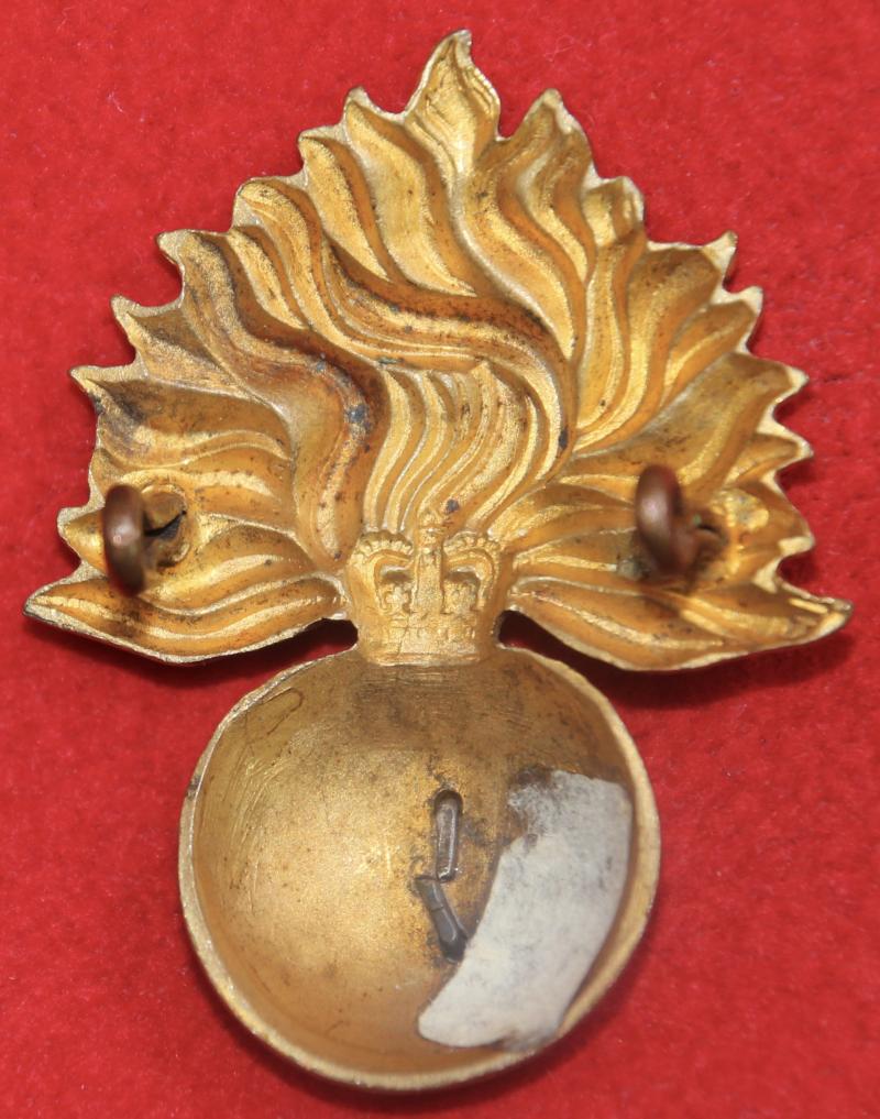 A silver-plated and gilt cap badge for an officer of The Fusilier Brigade/Royal Regiment of Fusiliers with two lug fastenings (east and west). KK2027.