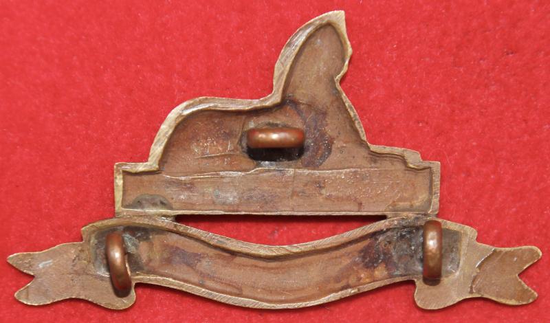 A scarce, officer's service dress, bronzed collar badge for the 4th or 5th (territorial) battalions of The Lincolnshire Regiment with three lug fastenings (north, east and west). Churchill 330.