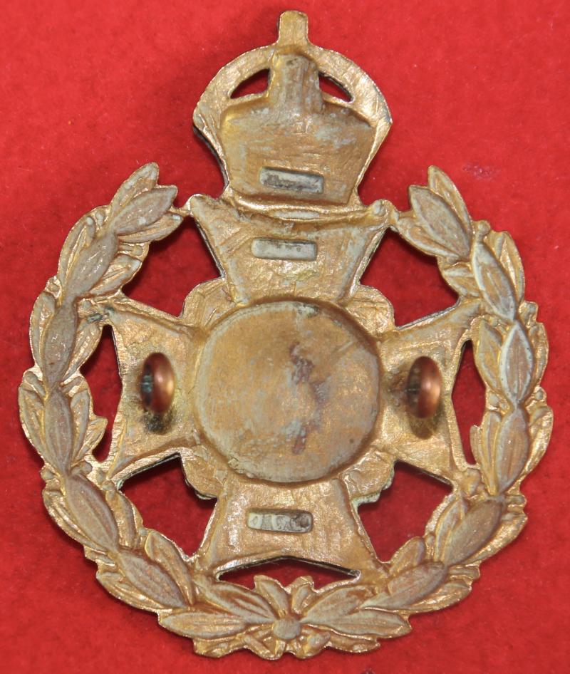 A scarce, bi-metal, cap badge for a non-commissioned officer of the 7th (territorial) battalion of The Sherwood Foresters (Nottinghamshire & Derbyshire Regiment) with two lug fastenings (east and west) and 'sweathole' construction. KK1740.