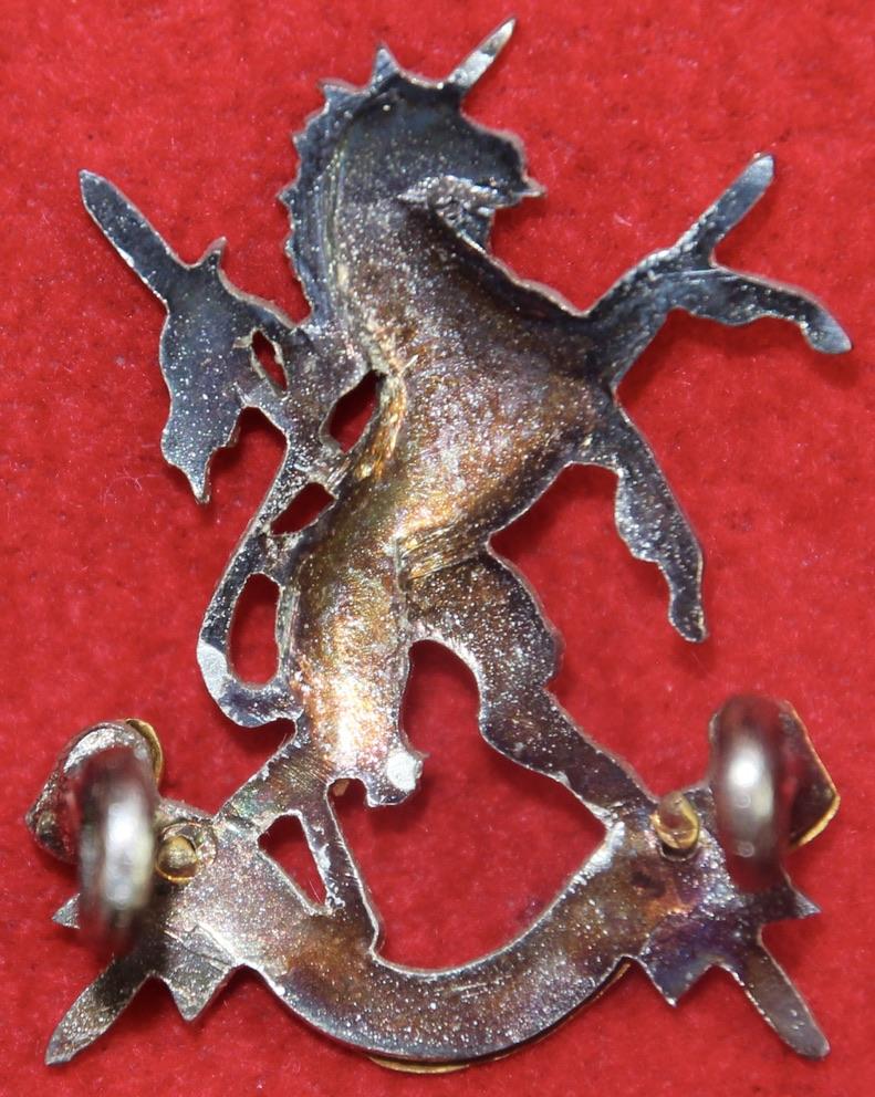 A scarce and attractive silver-plated and gilt cap badges for an officer of The Queen's Own Lowland Yeomanry, each with two lug fastenings (east and west). KK2311.