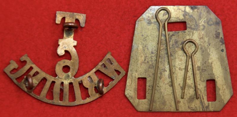 A brass shoulder title for the 6th (territorial) battalion of The Duke of Wellington's (West Riding) Regiment with three lug fastenings (north, east and west) and its backplate intact. Westlake 1073.