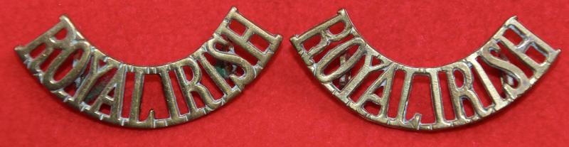 A scarce, brass, shoulder title for The Royal Inniskilling Fusiliers with three lug fastenings (north, east and west). Westlake 1007.