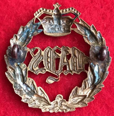 A brass cap badge for The 2nd Dragoon Guards (Queen's Bays) with two lug fastenings (east and west). KK736.