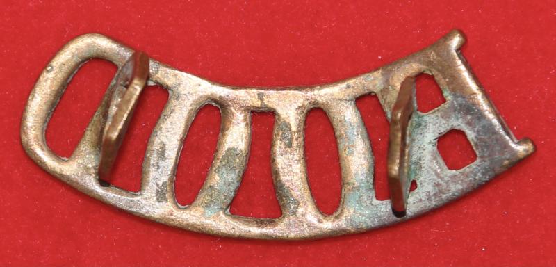 A rare, brass, shoulder title for The Royal Naval Division, Hood, with two hexagonal lug fastenings (east and west). Westlake 1618.