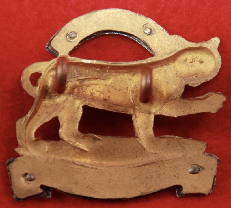 A scarce and attractive, silver-plated and gilt, beret badge for an officer of The Royal Leicestershire Regiment with two lug fastenings (east and west). KK1983.