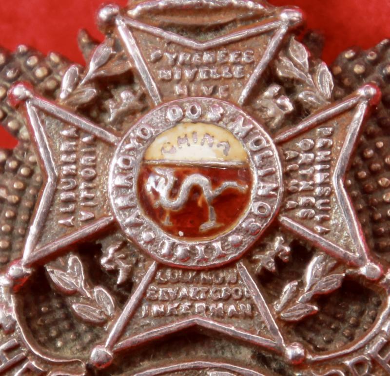 Note: This is the smaller version, similar to the Victorian version, worn until the badge was enlarged to add the Relief of Ladysmith honour to the bottom arm of the cross in 1905.