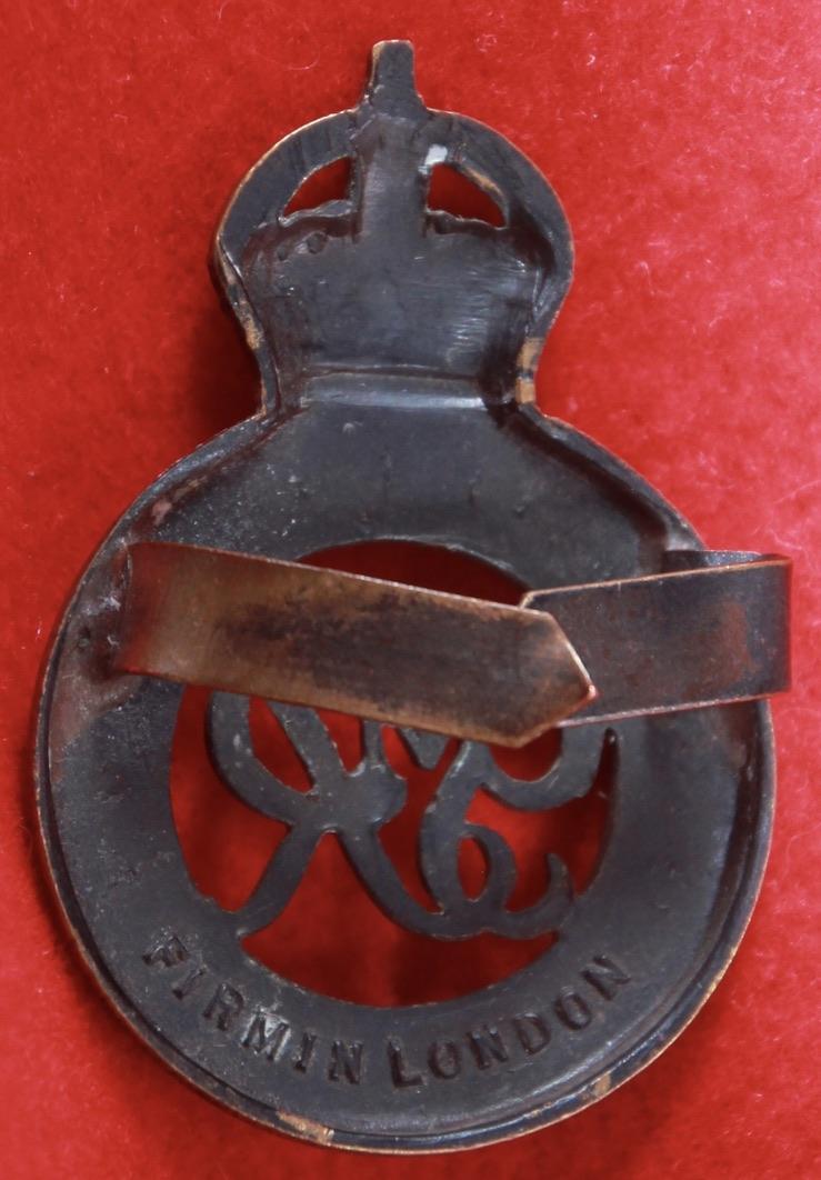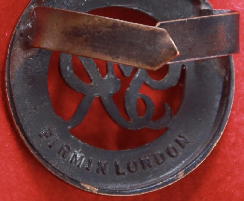 A George 6th pattern, officer's service dress, bronzed cap badge for The Royal Horse Guards with two blade fastenings (east and west). The reverse is marked for manufacturer Firmin London. KK1887.