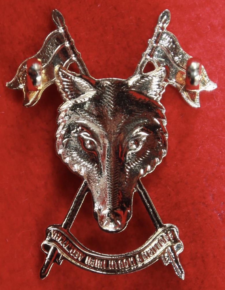 A bi-metal cap badge for The Scottish & North Irish Yeomanry with two lug fastenings (east and west).