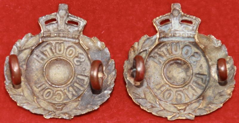 A rare pair of brass collar badges for The 69th Foot (South Lincoln, later 2nd battalion of The Welsh Regiment), each with two lug fastenings (east and west). Churchill 1133.