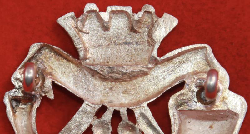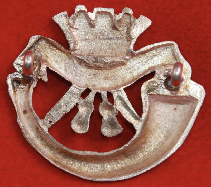 An unmarked silver cap badge an officer for The Cornwall Light Infantry with two replacement lug fastenings (east and west),. KK641.
