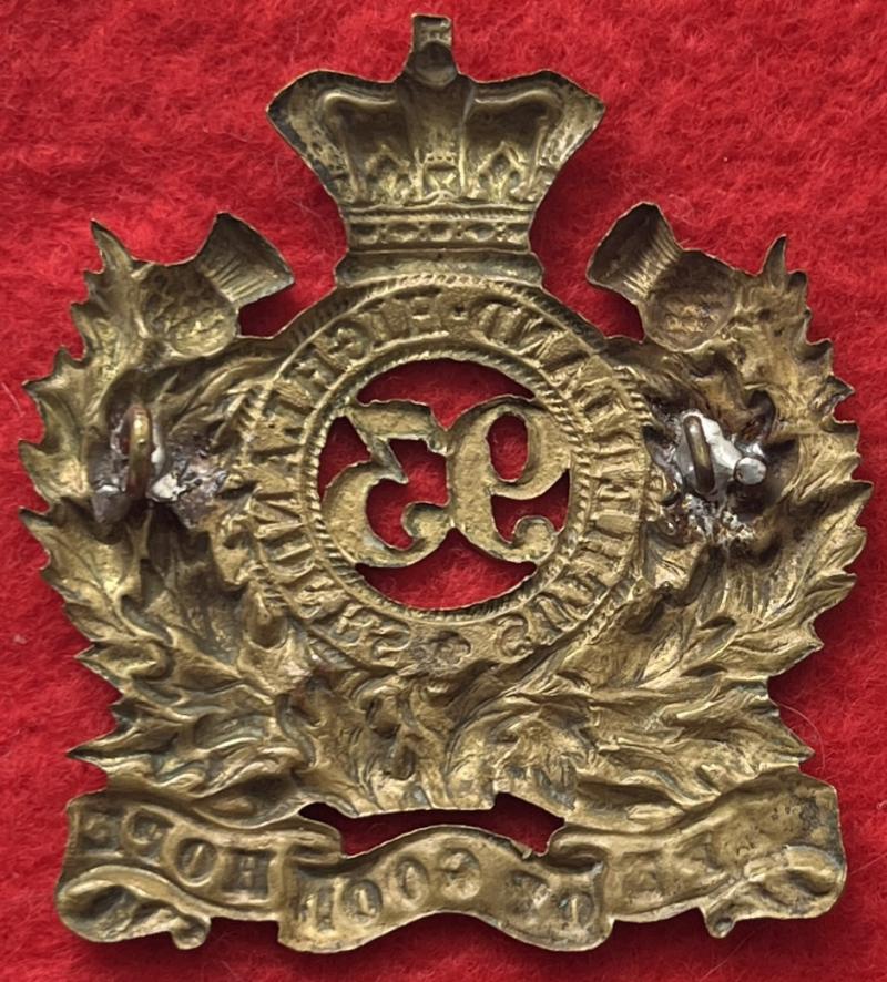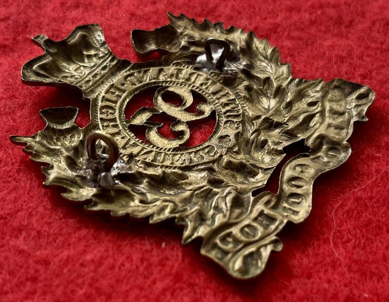 A rare, brass, glengarry badge for The 93rd Foot (later 2nd battalion of The Argyll & Sutherland Highlanders) with two rather crude replacement lug fastenings (east and west). KK566.