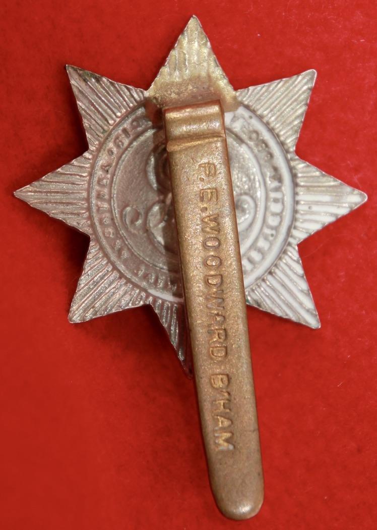A white metal, Edward 7th pattern, cap badge for The Middlesex Imperial Yeomanry with a slider fastening (marked F.E. Woodward B'ham). KK1342.