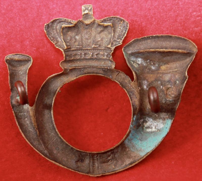 A scarce, (somewhat faded) blackened brass, cap badge for The 19th Middlesex Rifle Corps with two lug fastenings (east and west).