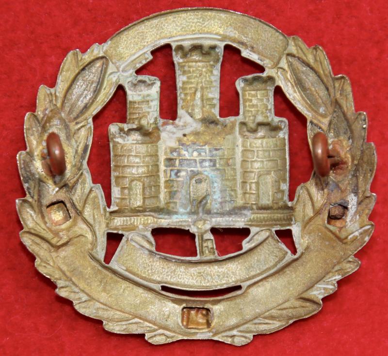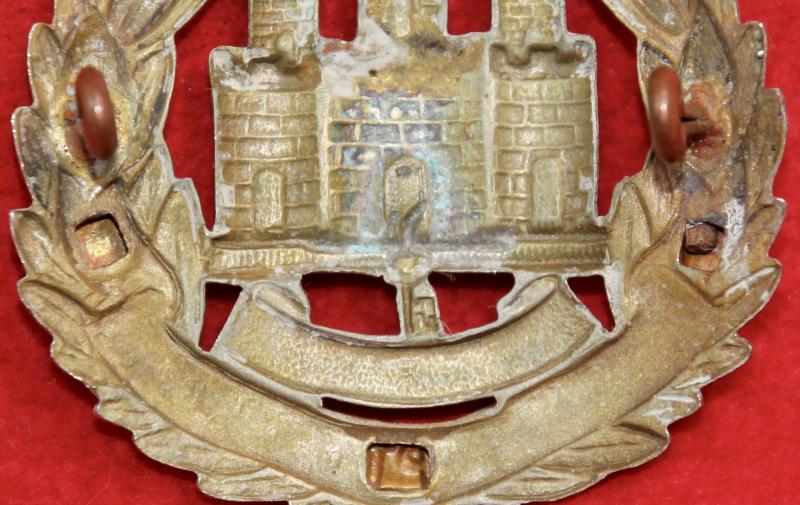 A scarce, bi-metal cap badge for the 4th (territorial) battalion of The Northamptonshire Regiment with two lug fastenings (east and west - perhaps replacing a slider fastening?) and the usual 'sweathole' construction. KK1742.