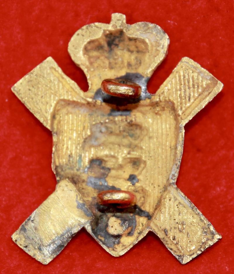 A rare and attractive, gilt, cap/collar badge for The Royal Jersey Light Infantry (Militia) with two lug fastenings (north and south).