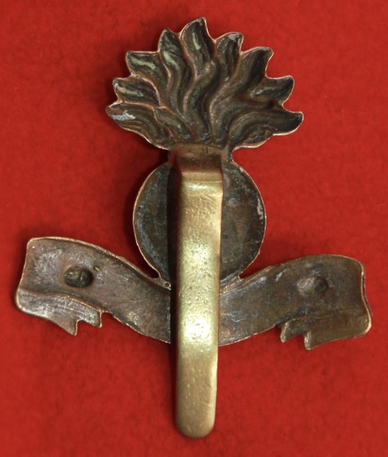 A bi-metal cap badge for The Royal Dublin Fusiliers with a slider fastening and the usual 'sweathole' construction. Slight polish. KK702.